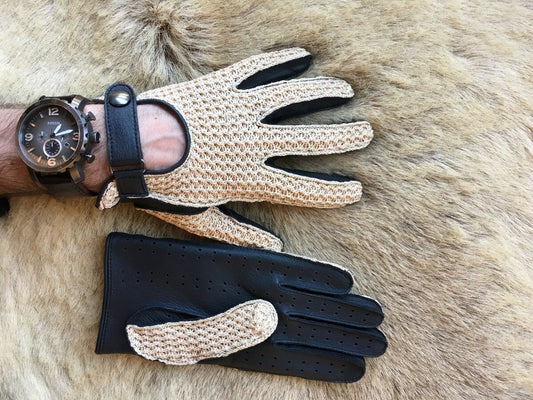 Men’s Crochet Driving Gloves Deerskin Leather Black